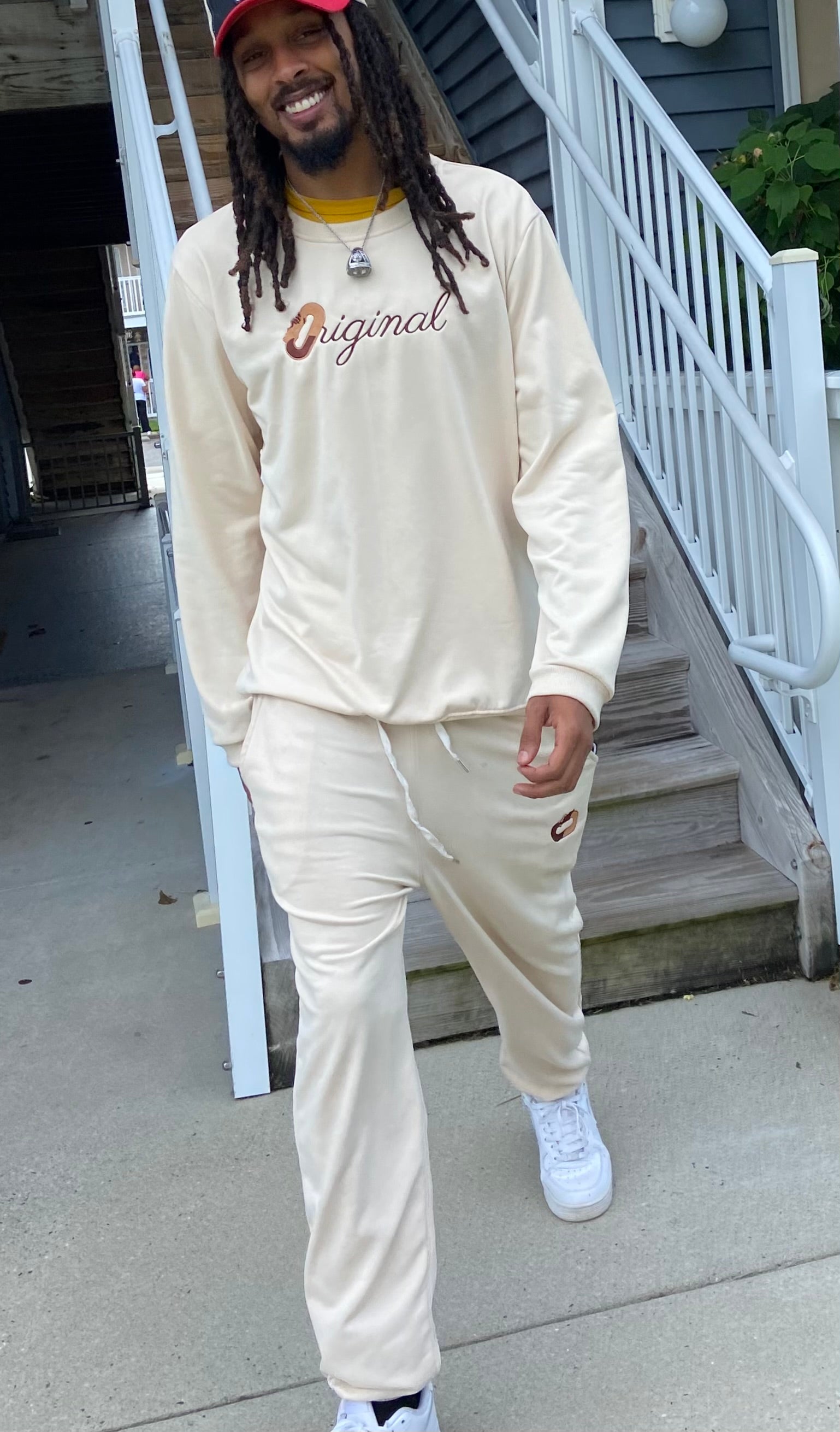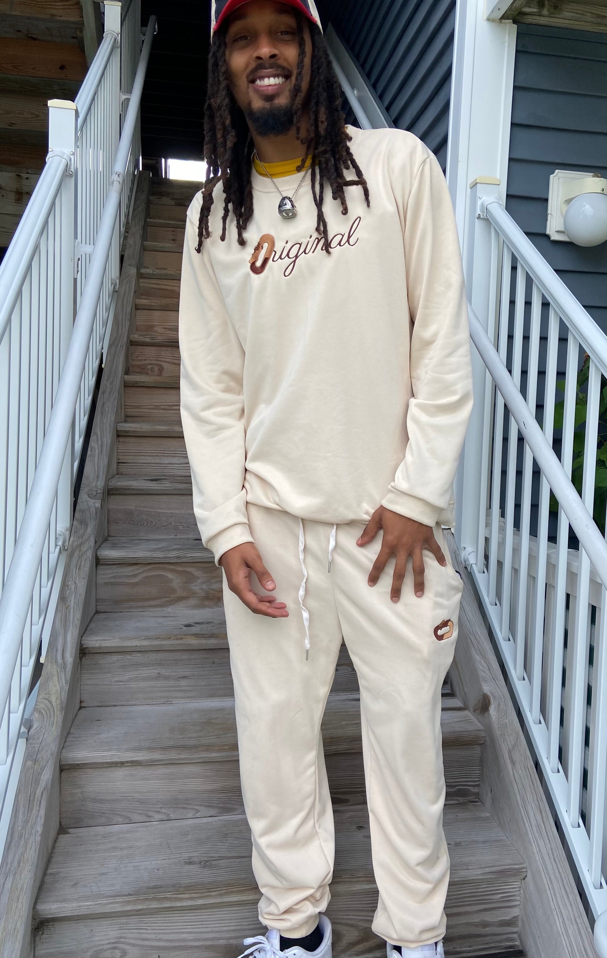 Cream Loose-Fit Crew Neck Pullover Sweatshirt Drawstring Sweatpants Set - Soft, and Comfortable Long Sleeve, Casual Outfit for Everyday Wear